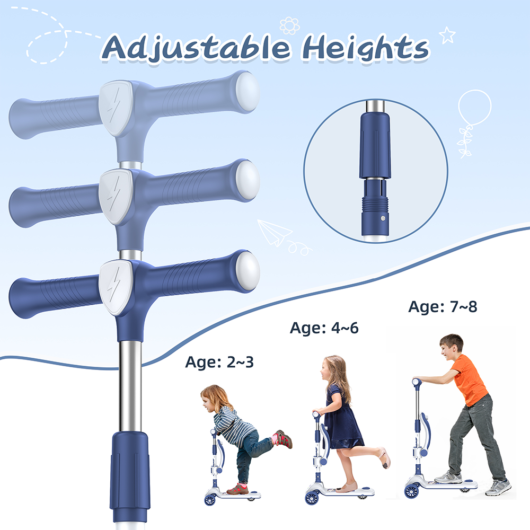 - 【Adjustable Handlebar】The handlebar is comfortable, non-slip and easy to hold. There are 3 different heights for the handlebar. This accommodates usage for children as they grow older.